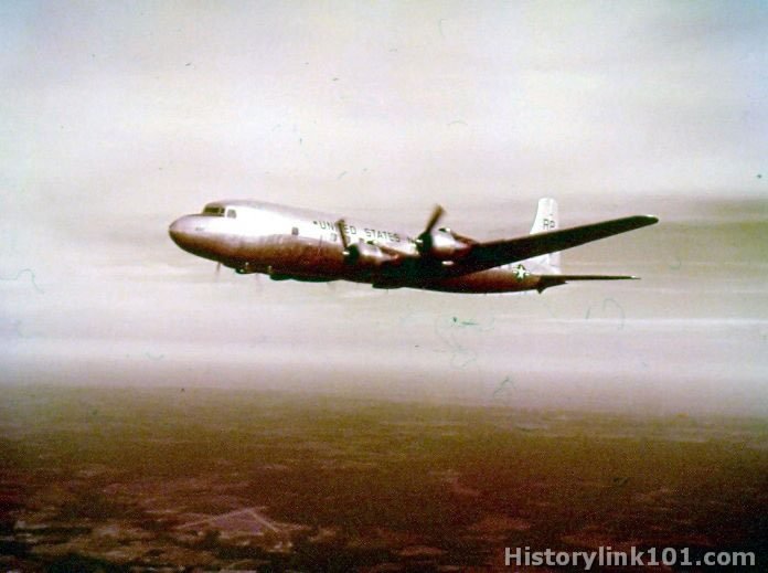 R6D piloted by Lt. Sheldon of VR-1, in flight over NAS Patuxent River area, MD.