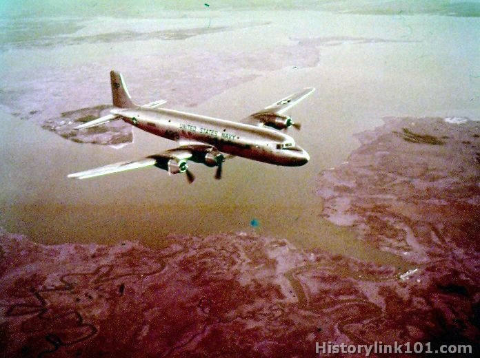 R6D piloted by Lt. Sheldon of VR-1, in flight over NAS Patuxent River area, MD.