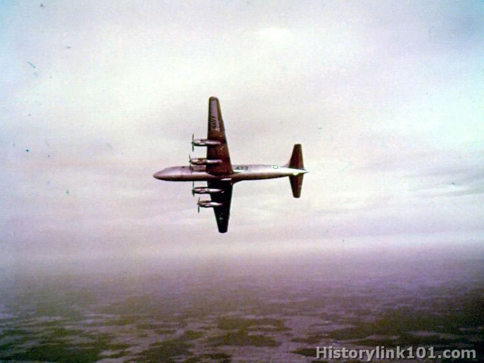 R6D piloted by Lt. Sheldon of VR-1, in flight over NAS Patuxent River area, MD.