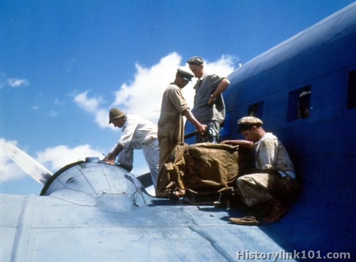 NATS R5D's are shown before flight at West Coast Airfield. Planes fly supplies to Alaska and Aleutians. Refueling plane.