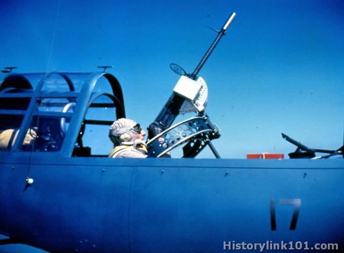 Aerial gunner operation 30 cal. machine gun in rear seat of SBD.