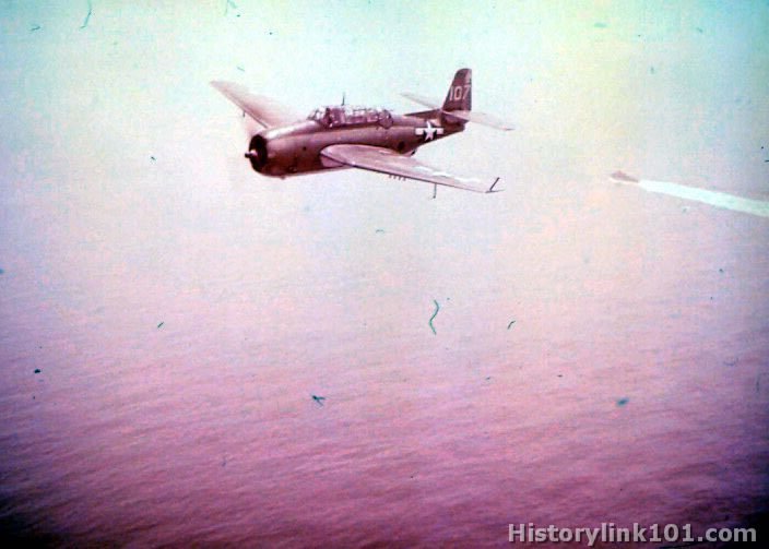 TBM heads towards Okinawa during early stages of the invasion of that strategic island. May 18, 1945