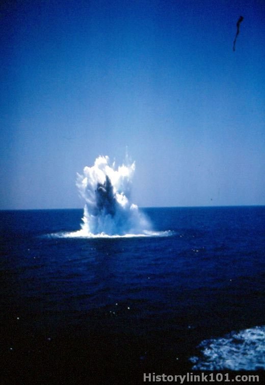 Column of water is seen from exploding depth charge dropped by DE.