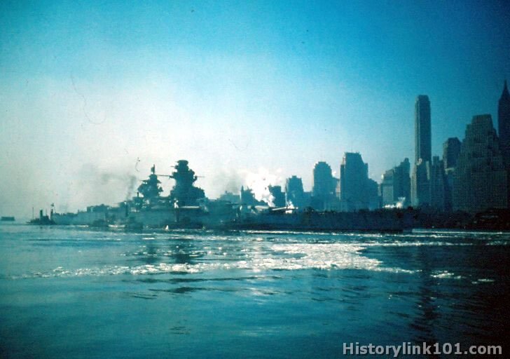 French battleship Richelieu entering New York harbor. Nov. 1943