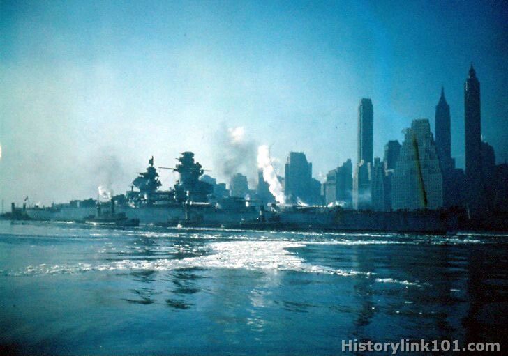 French battleship Richelieu entering New York harbor. Nov. 1943