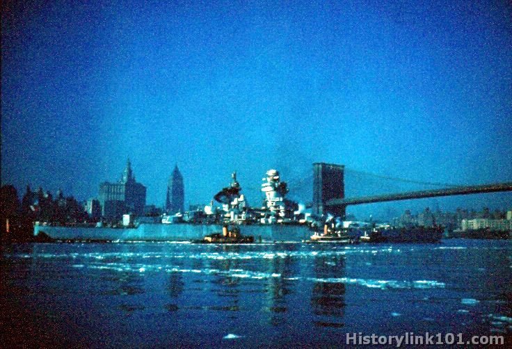 French battleship Richelieu entering New York harbor. Nov. 1943
