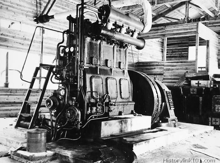 | A captured Japanese power plant shown here was repaired and turned to American use on Guadalcanal by skilled Navy Seabees. March 1943 |