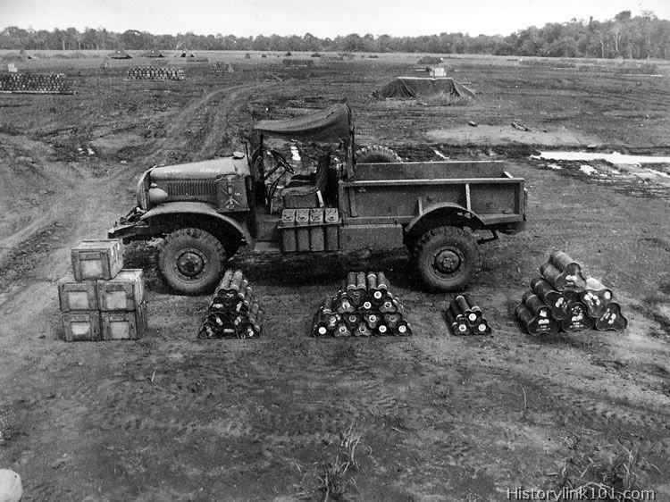 Ammunition dump. Properly loading truck with ammunition. Guadalacanal - April 1, 1944