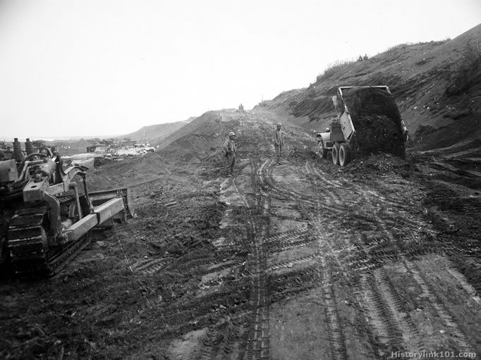 Dump truck on "B" Company Hill (8th Marines). Iwo Jima - March 1945