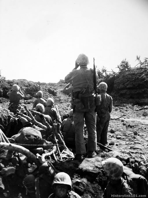 Pictures were taken at the National Archives and are offered Royalty Free by Historylink101's World War II Picture Section. Pictures can be found at the Marines in World War II Picture Page.