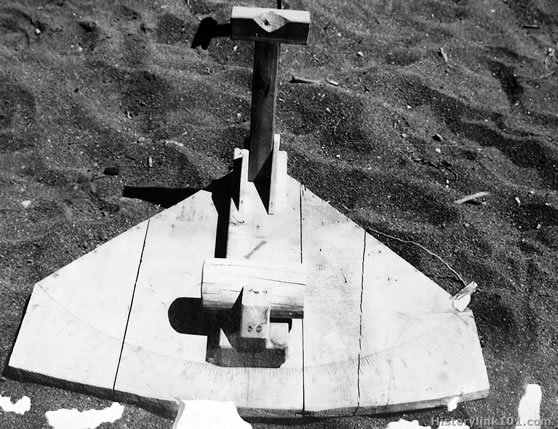 Wooden base and rest for Jap grenades discharger. Note graduated base. Iwo Jima - 1945