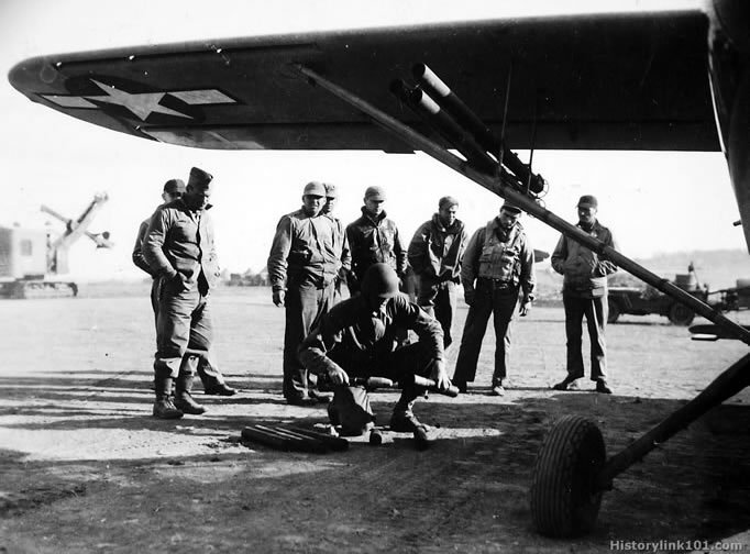 Three bazookas mounted on US OY-1. Iwo Jima - March 1945