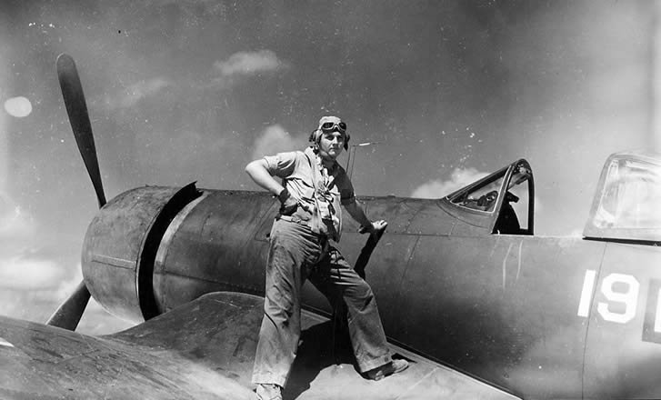 Tokyo next stop - Marine flyer, takes off in his plane. The 21 year old pilot is a member of the hard-hitting Leatherneck Buccaneer fighting squadron. June 19, 1944 - Marshall Islands