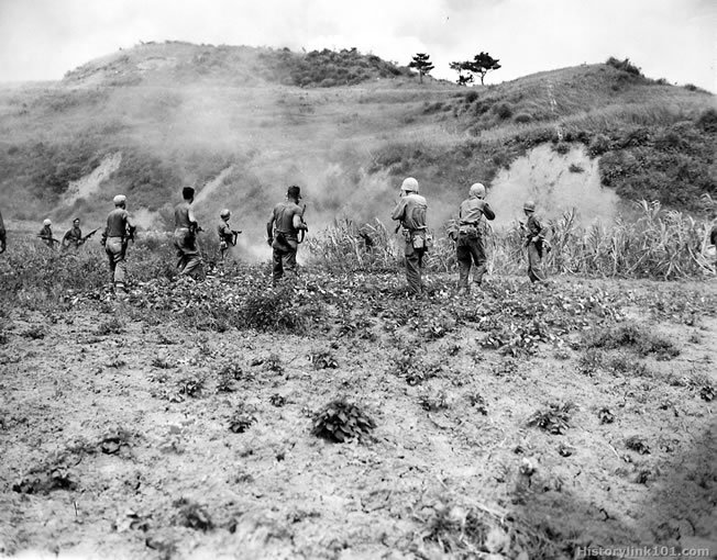 Pictures were taken at the National Archives and are offered Royalty Free by Historylink101's World War II Picture Section. Pictures can be found at the Marines in World War II Picture Page.